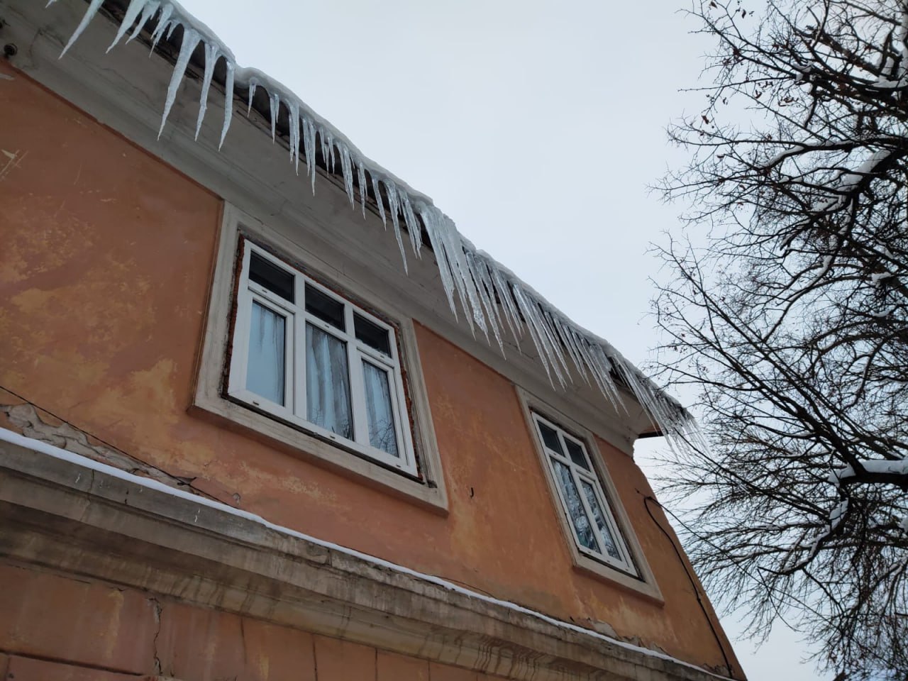 13 февраля в Калуге из-за резкого потепления со зданий начали сходить снег и наледь.