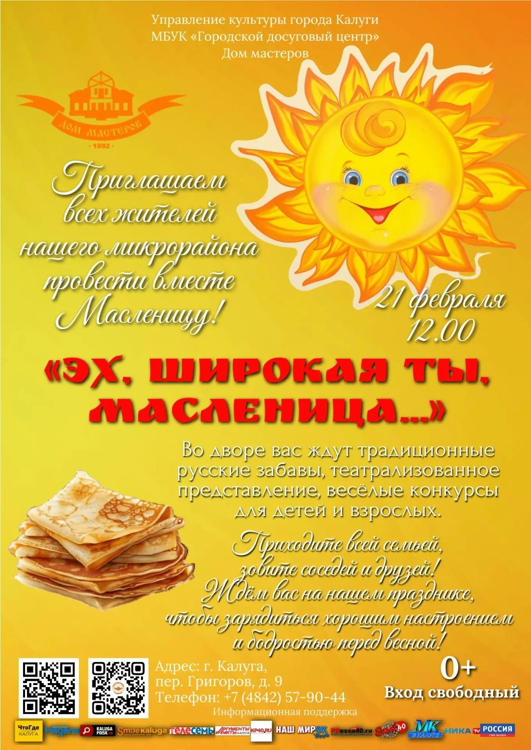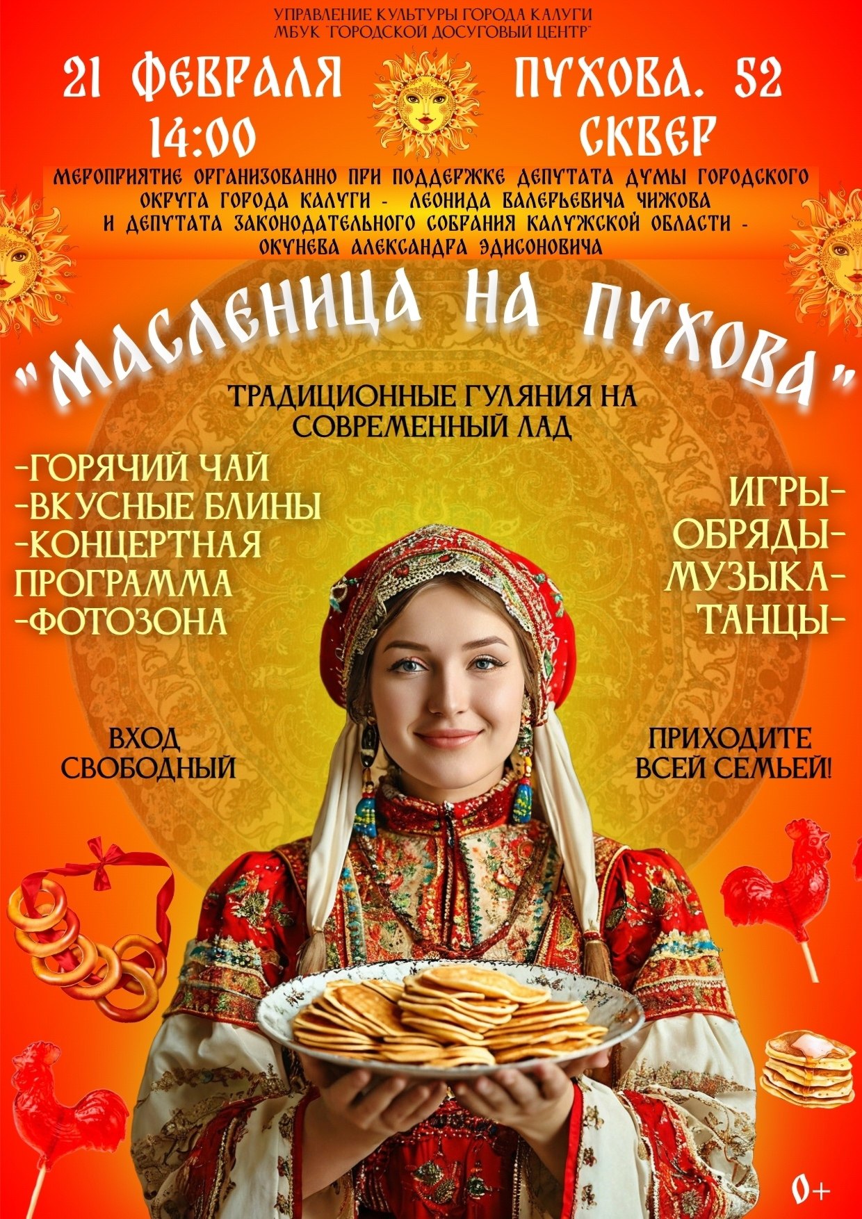 Напоминаем о городских мероприятиях «Калужская Масленица 2026». На площадках будут звучать задорные народные песни, пройдут ярмарки, выставки и мастер-классы.