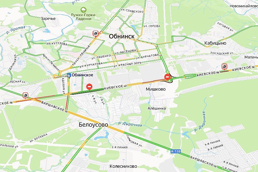 В «Автодоре» 16 февраля сообщили о затруднениях на Киевском шоссе в районе Обнинска. После обеда на подъездах к наукограду встали две пробки.