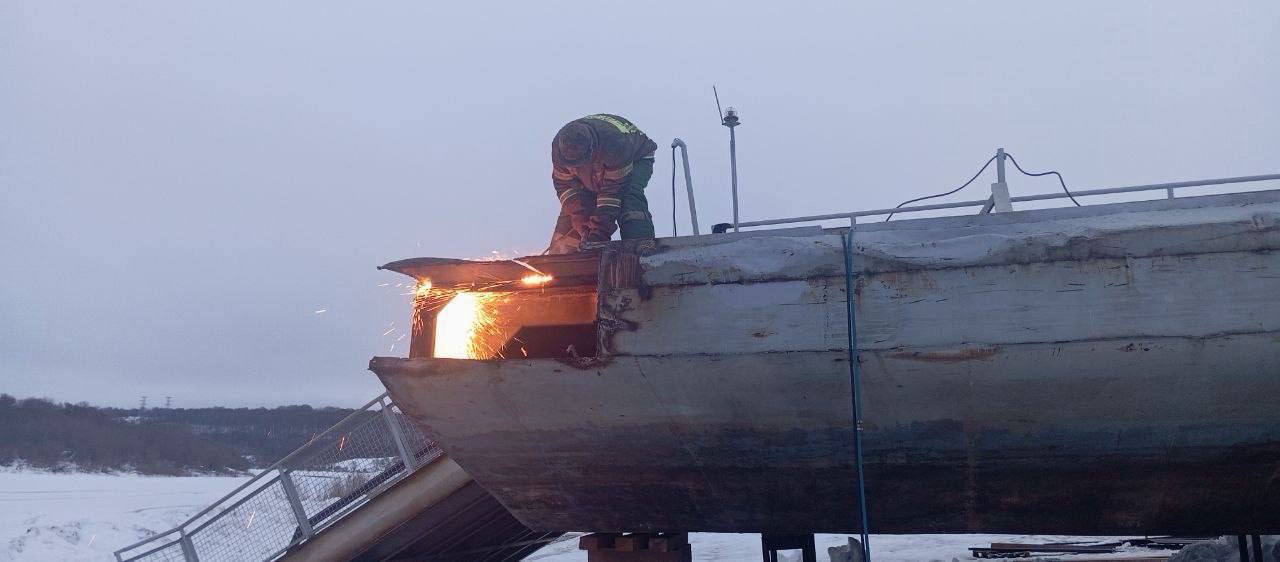 Подрядчик снимает платформы с понтонов, началась замена обшивки и днища секций. Кроме того, планируется обновить металлические конструкции на гидросоружении, покрасить мост и восстановить систему освещения. Ранее наплавной мост был признан аварийным, в связи с чем его демонтировали для ремонта. Работы планируется завершить в мае текущего года.