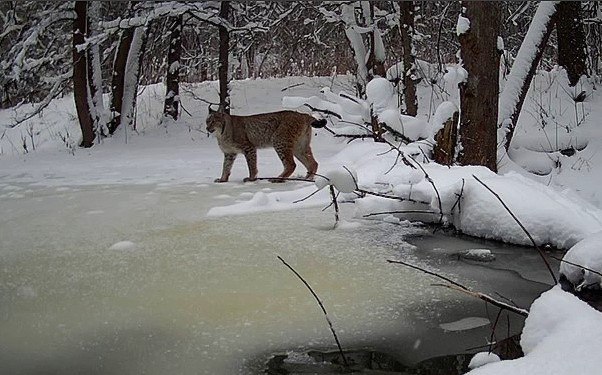 Фотоловушка в «Калужских засеках» сняла прогулку рыси по бобровой плотине