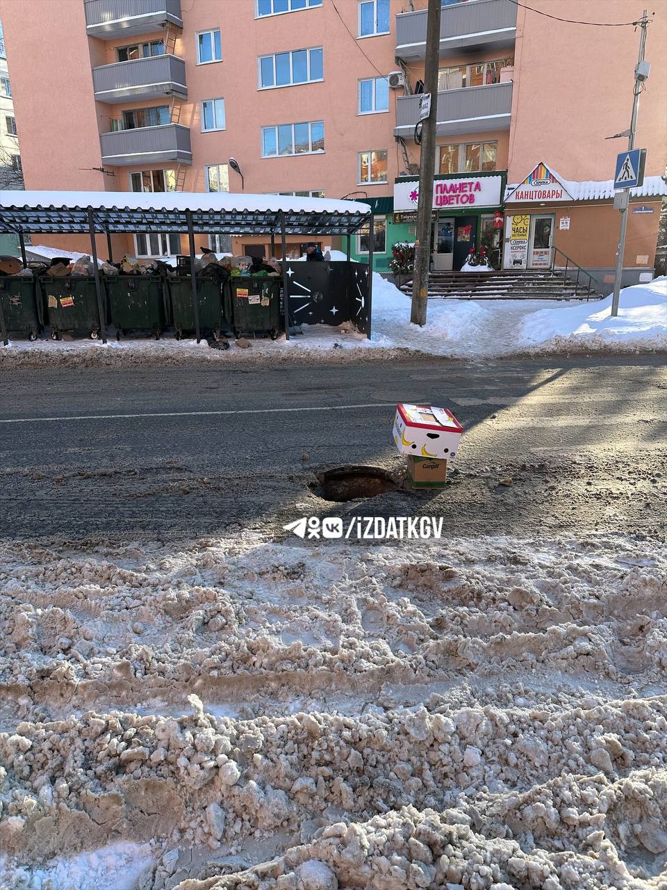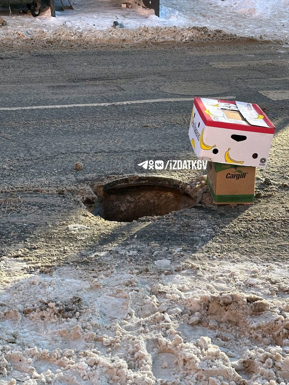 Подписчик сообщил, что у дома №21а по улице Суворова открытый колодец. Люка нет. Рядом пешеходный переход, да и машина может попасть колесом, если коробки сдует ветром или просто не заметит.