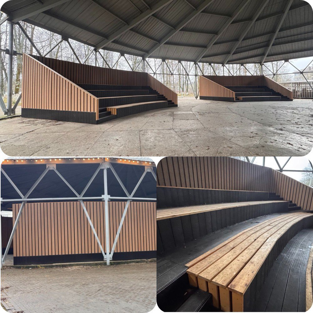Под крышей построили трибуну.