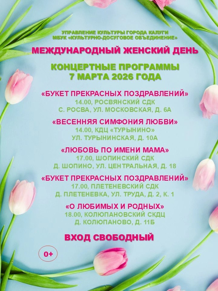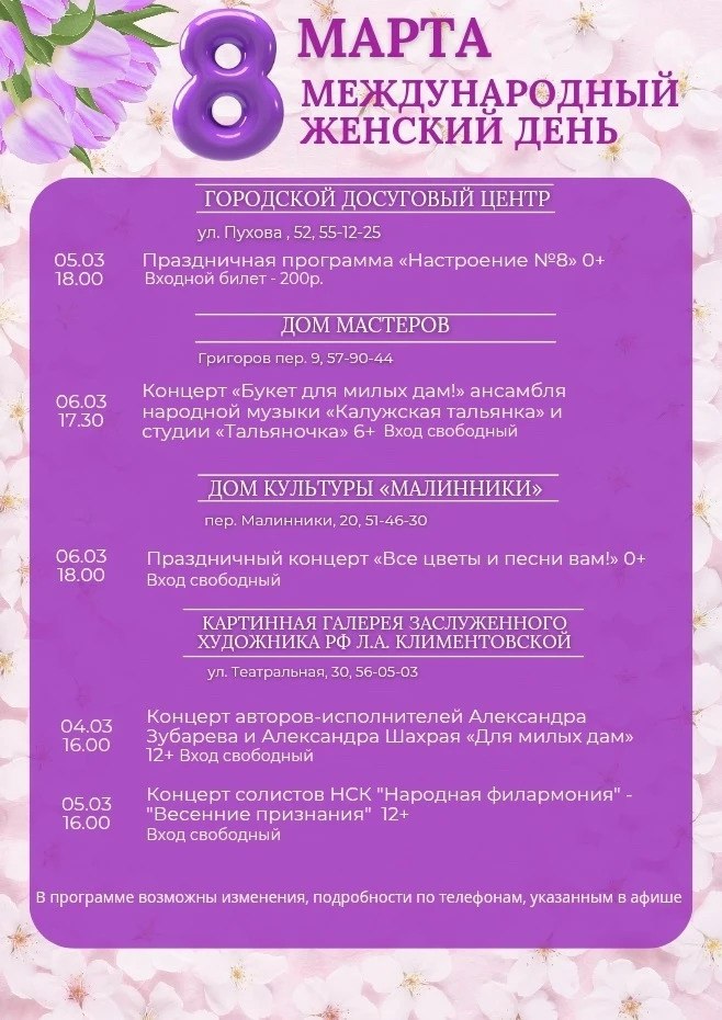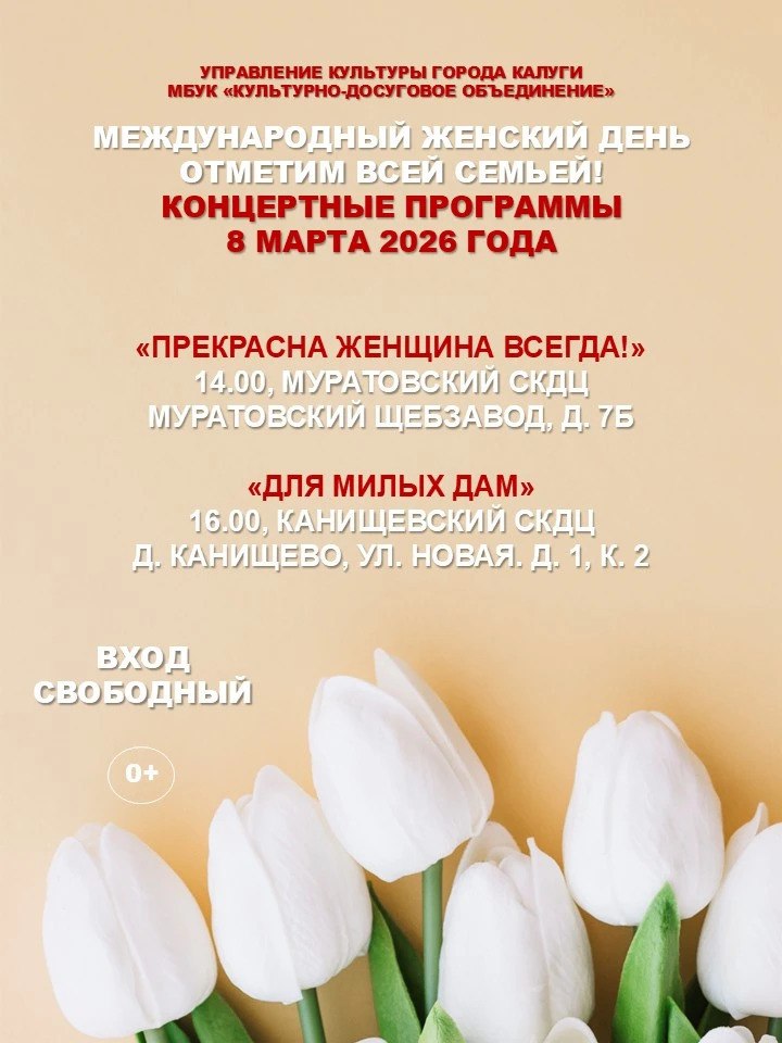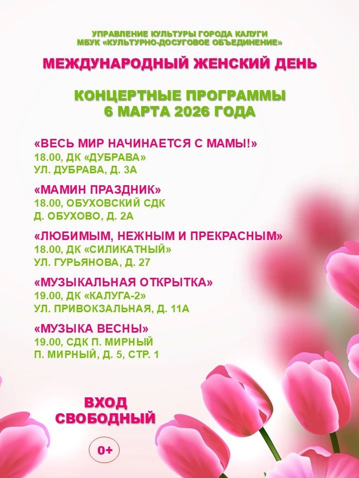 У нас подготовлена яркая концертная программа для наших дорогих женщин. Приходите всей семьей, зарядитесь позитивом и получите массу приятных впечатлений!