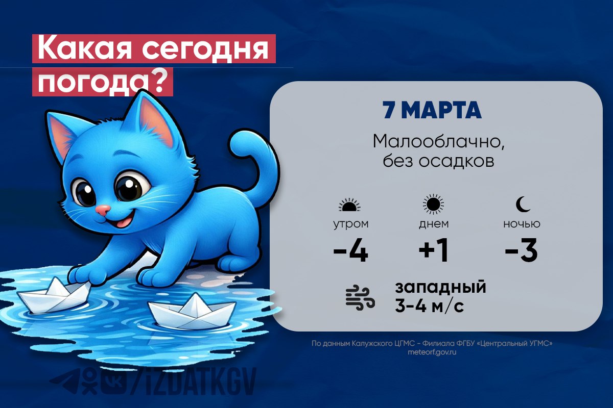 В субботу, 7 марта, в Калужской области ожидается по-настоящему весенняя погода. Синоптики прогнозируют малооблачный день с прояснениями. Утром будет еще прохладно — около -3 градусов, но днём воздух прогреется до +3. К...