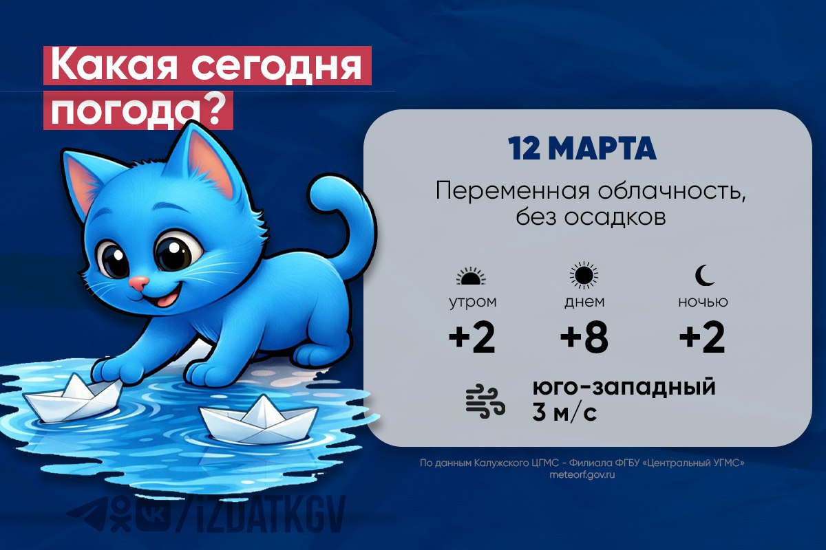 Доброе утро, калужане! Погода на утро и день 12 марта, а также в ночь со 12 на 13.