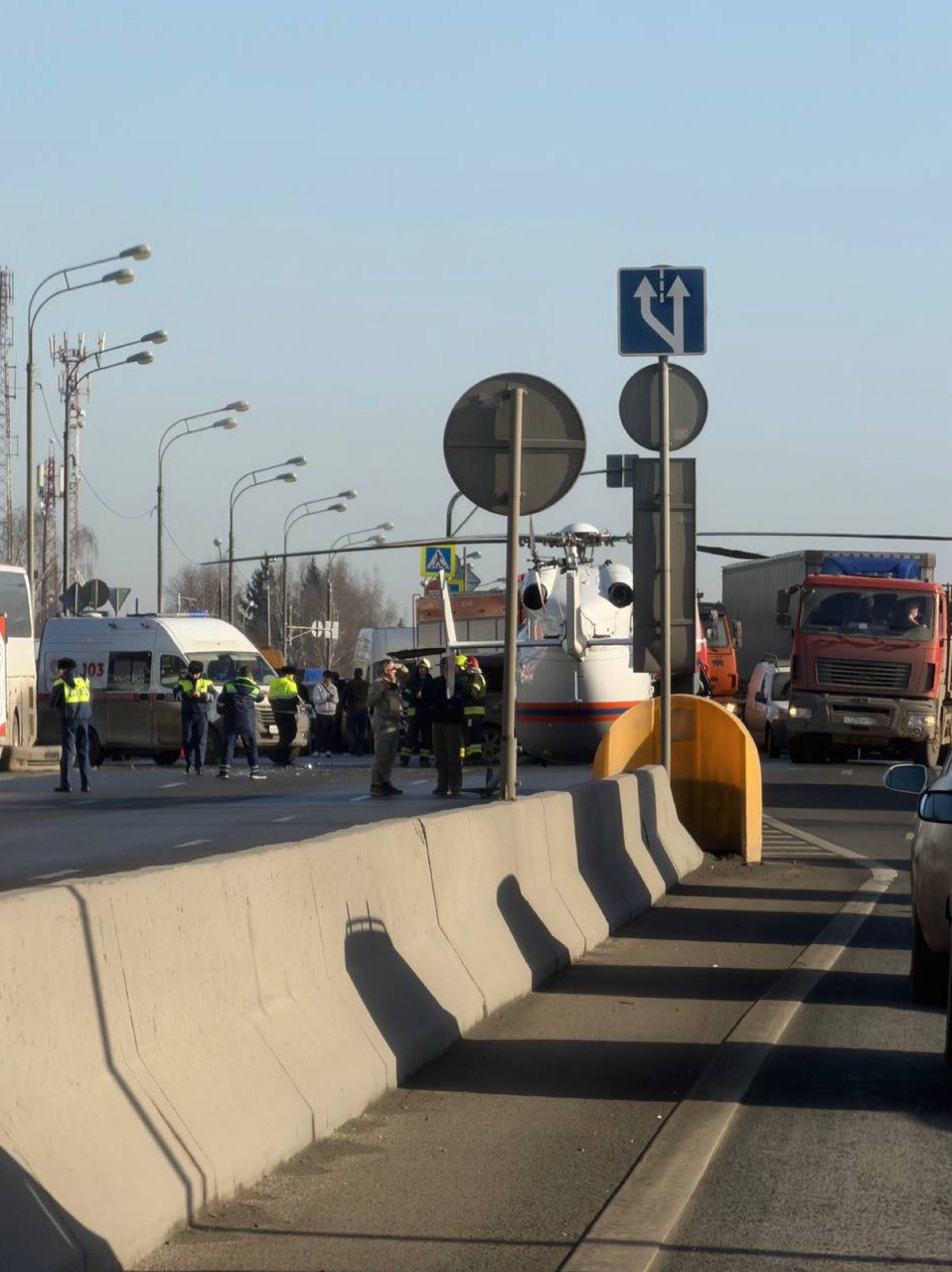На месте ЧП перекрыто четыре полосы движения из пяти.