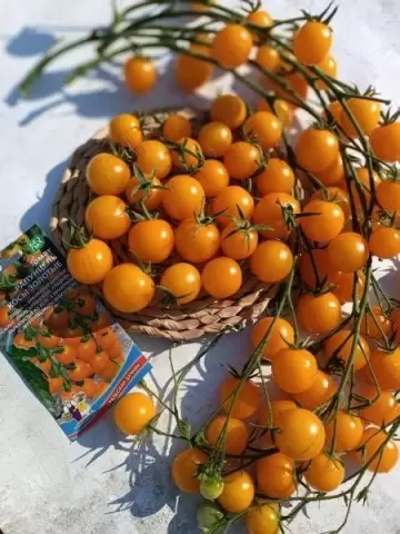 Каскадные кисти достигают заметной длины и несут десятки ягод. Плоды — маленькие, оранжевые, сладкие и мясистые, с бархатистой структурой и ярким фруктовым послевкусием. Цвет мякоти тестирует содержание каротиноидов и делает вкус особенно десертным.