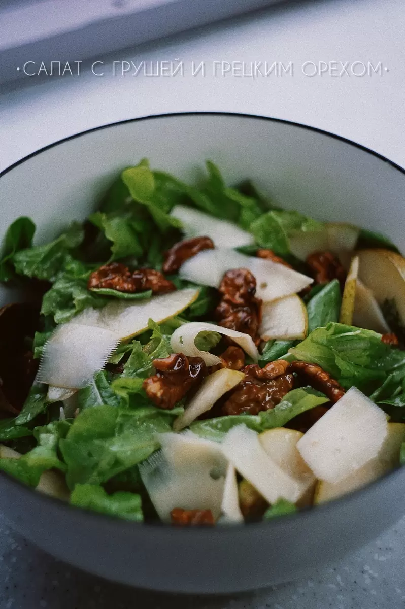 Приготовление этого салата — это настоящее искусство! Сочетание сладкой груши с хрустящими орехами и ароматным сыром не оставит равнодушным никого. Этот легкий и сытный салат идеально подходит как для обычного ужина, так и для праздничного стола.