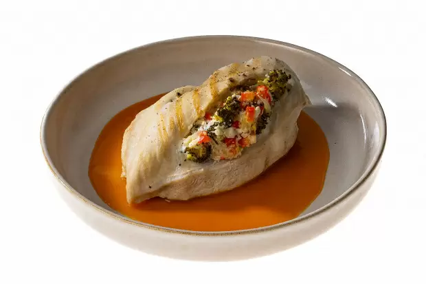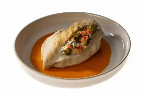 Подготовка ингредиентов: Тщательно соберите все необходимые продукты.Приготовление брокколи: Разделите капусту на небольшие соцветия для равномерного приготовления.Нарезка овощей: Мелко нарежьте лук-шалот и чеснок, а перец – кубиками размером 7 мм.Смешивание начинки: Объедините овощи с брынзой до получения однородной массы.Формирование куриных карманов: Сделайте в каждом филе глубокий надрез, образуя карман, и наполните его овощной смесью.Обжарка на гриле: Разогрейте сковороду-гриль, смажьте ее растительным маслом и обжарьте грудки с одной стороны на среднем огне около 2 минут для золотистой корочки.Приготовление на пару: Поместите фаршированные куриные грудки в пароварку и готовьте 20 минут.Приготовление соуса: Очистите мандарины, измельчите мякоть в блендере и процедите через сито. Сок перелите в сотейник, добавьте сахар, имбирь, кардамон и бадьян, затем выпаривайте до загустения.Финальные штрихи: На слабом огне добавьте сливочное масло к соусу и тщательно перемешайте до полного растворения.Подача блюда: Полейте готовые фаршированные грудки мандариновым соусом и подавайте к столу.