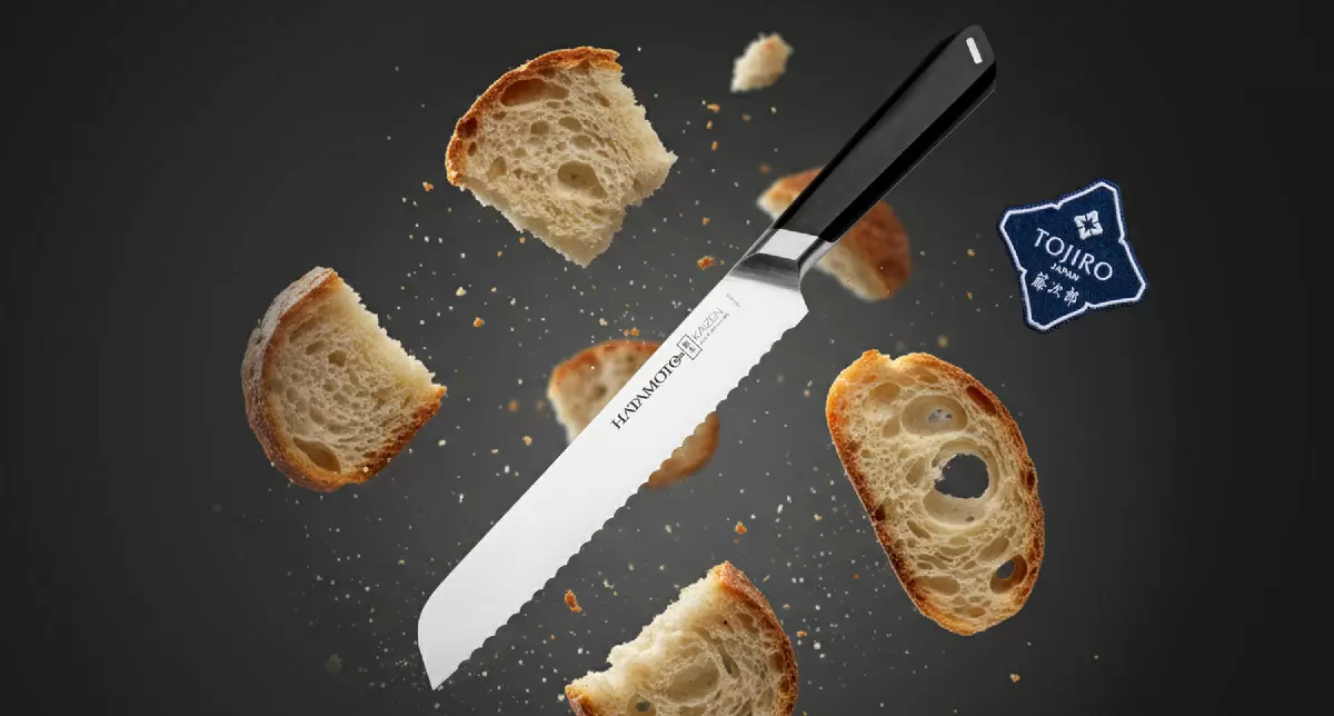 Здесь на помощь приходит кухонный нож Hatamoto HVT-009. Его уникальное зубчатое лезвие effortlessly справляется с твердой корочкой, не повреждая мягкую внутреннюю структуру, создавая только идеальные кусочки. Кулинарные эксперименты с хрустящими круассанами, легкими бисквитами или капризными батонами теперь не будут вызывать беспокойство.