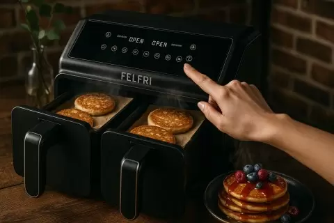Время за утром может быть довольно напряжённым, и очень часто хочется готовить быстро, но вкусно. Оладьи, выпеченные в аэрогриле, становятся отличным решением: они получаются пышными, румяными и менее жирными по сравнению с традиционным способом приготовления на сковороде. И самое приятное — вся кухня останется чистой, а на приготовление уйдет всего 10-15 минут.