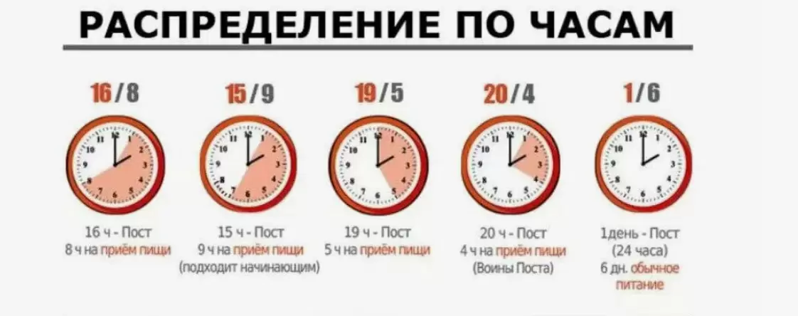 Интервальное голодание предлагает множество планов, среди которых наибольшей популярностью пользуются: