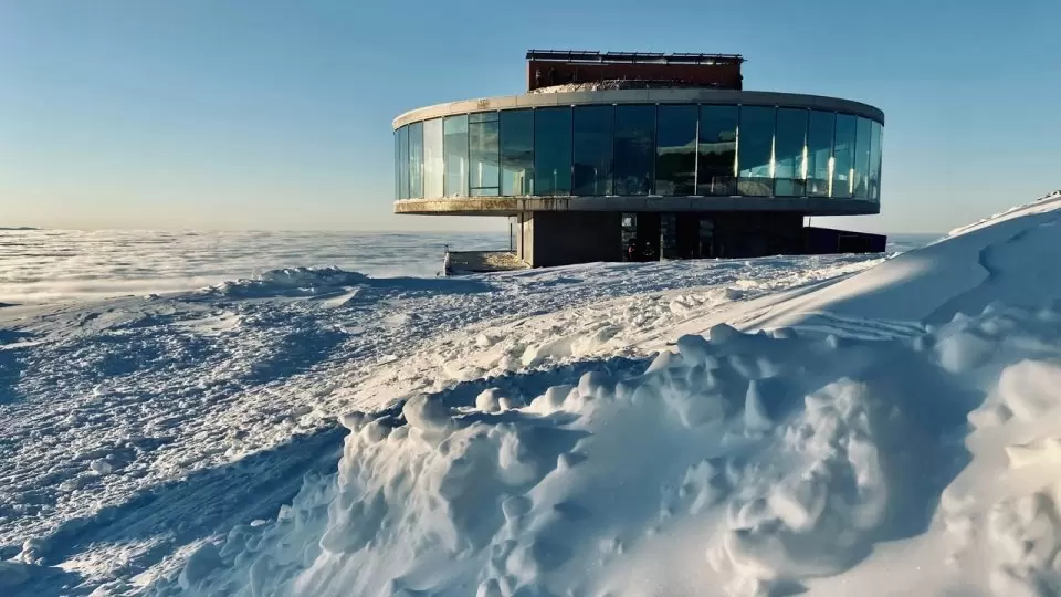 Здание — необычный элемент курорта, о котором рассказывают как о месте, будто парящем в горной породе. Взрыв породы и путешествие вверх по архитектуре создают ощущение, что нижние этажи держатся над верхними, а не наоборот. Это не просто ресторан, а целый архитектурный образ, вписанный в окрестности.