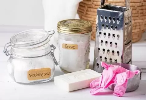 Чтобы создать собственный порошок, смешайте все ингредиенты в просторной миске. Не забудьте использовать перчатки, так как кальцинированная сода может вызвать раздражение кожи. Если вы предпочитаете приятный аромат, можно заменить хозяйственное мыло на туалетное с желаемым запахом. Обычно, готовый порошок получается практически без запаха, что может быть как преимуществом, так и недостатком в зависимости от ваших предпочтений.
