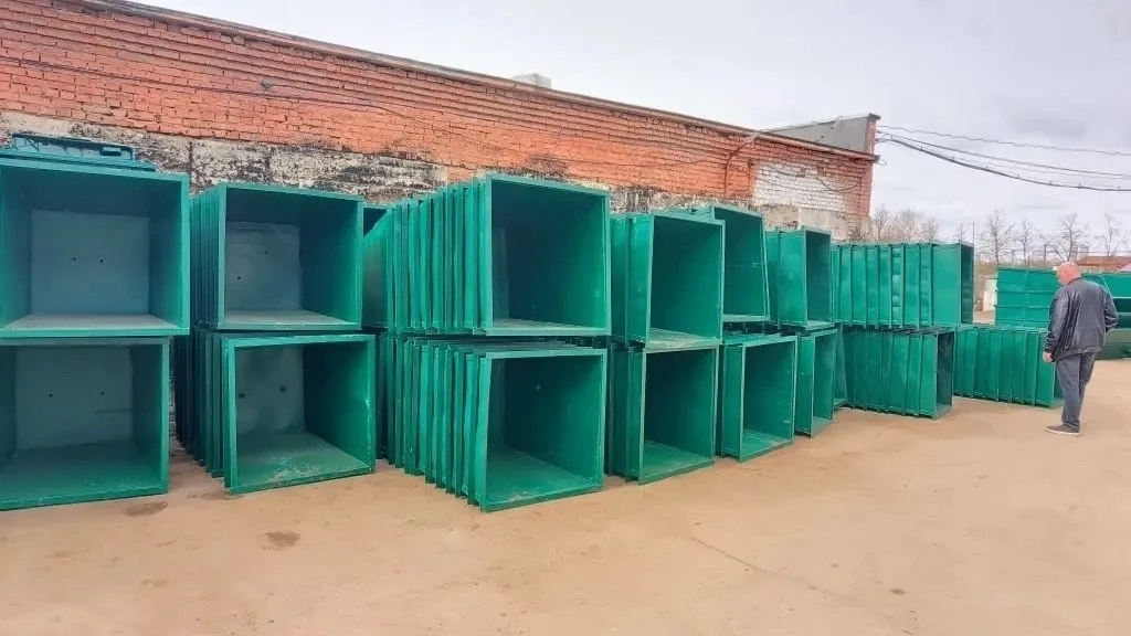 В неё вошли 300 металлических контейнеров (0,75 куб. м), 330 пластиковых контейнеров (1,1 куб. м), а также 12 бункеров (8 куб. м).