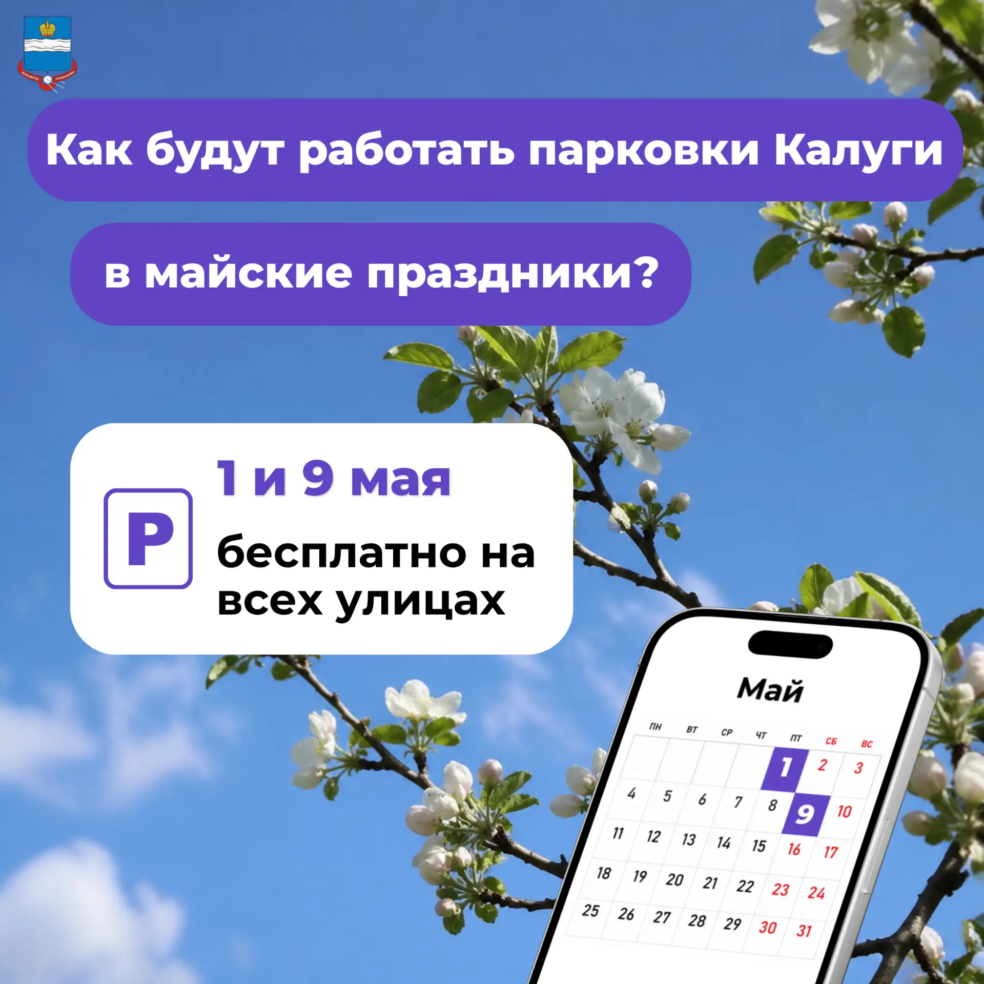 На майских праздниках 1 и 9 мая парковки в Калуге будут бесплатными