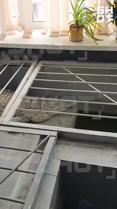 Прямо рядом с журналистами обитает огромный крокодил.Одна из журналисток показала ролик в своих социальных сетях. Мнения пользователей разделились. Многие посчитали, что над рептилией издеваются - у нее якобы небольшая клетка и нет...