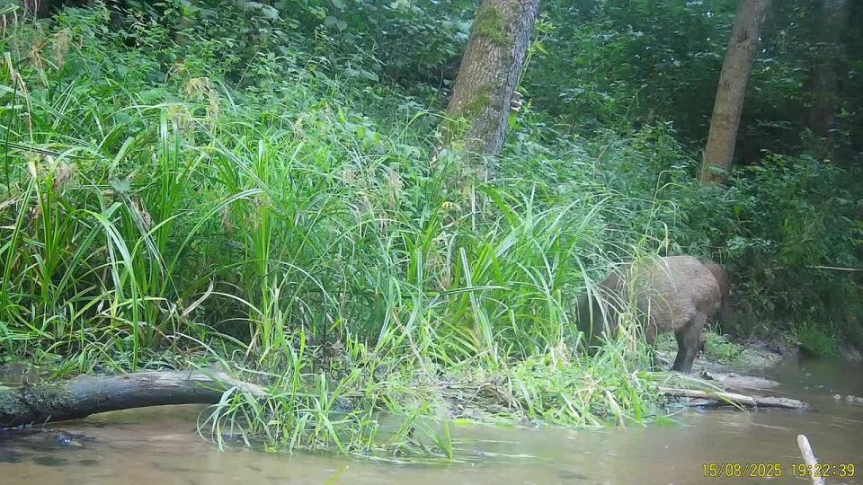 Заповедник «Калужские засеки» поделился видеозаписью, которую сделал глава кабаньего семейства на водопое. Увидев фотоловушку, он развернул ее пятачком, благодаря чему в кадр попало все его...